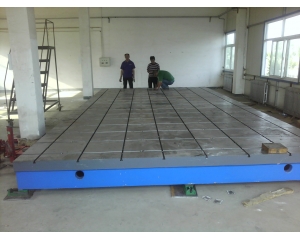 3、焊接T型槽平臺在平板的相對兩側(cè)面上,應(yīng)有安裝手柄或吊裝位置的設(shè)置、螺紋孔或圓柱孔。設(shè)置吊裝位置時應(yīng)考慮盡量減少因吊裝而引起的變形。